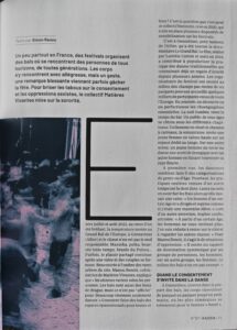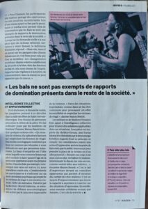 Nous avons participé cette année à plusieurs interviews qui présentent notre travail et donne à entendre notre analyse féministe des dynamiques dans nos milieux de danse. N’hésitez pas à écouter et transmettre ces liens aux personnes qui aimeraient en savoir plus à notre sujet !